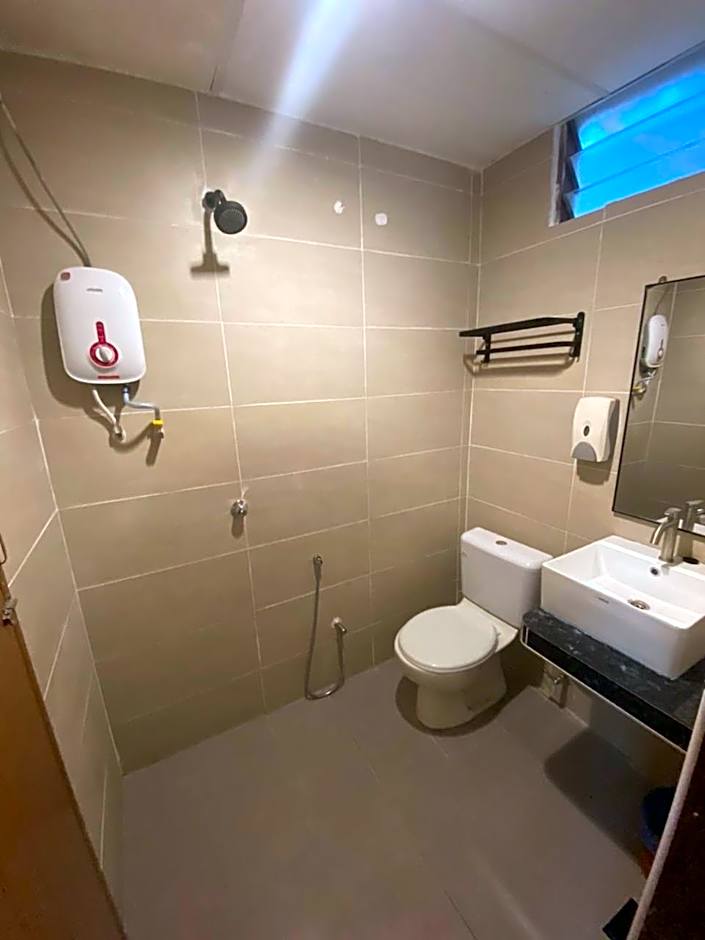 Air-conditioned room with Astro TV and private bathroom with hot shower. Can accommodate up to 3 guests.